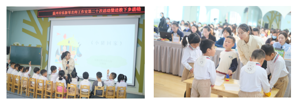 为更好地发挥示范辐射作用,加强幼儿园的教育建设,实现教师间的有效教学互动,让老师们能进行有效的课堂教学交流,温州市张新琴名师工作室在主持人的带领下,携工作室成员于10月13日到乐清市城东街道云海幼儿园进行送教下乡活动——多元全力,多方支持,旨在发挥张新琴名师工作室的优质资源共享效应,传递先进的教学理念,有效搭建幼儿教育联系的桥梁,为城区学区的老师们呈现了丰富多彩的教学课堂以及多维的幼儿教育理念和方法。
