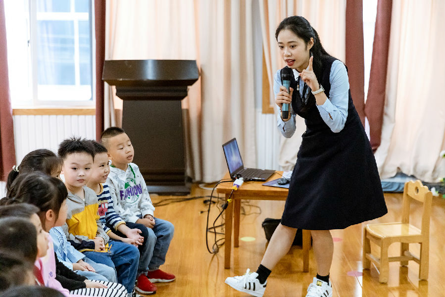 文成县中心幼儿园的张晨扬老师率先带来大班社会领域的集体教学活动《一辈子的好朋友》。张老师用优美的语言和亲切的教态与大家娓娓道来,带领孩子们感受友谊的美好。