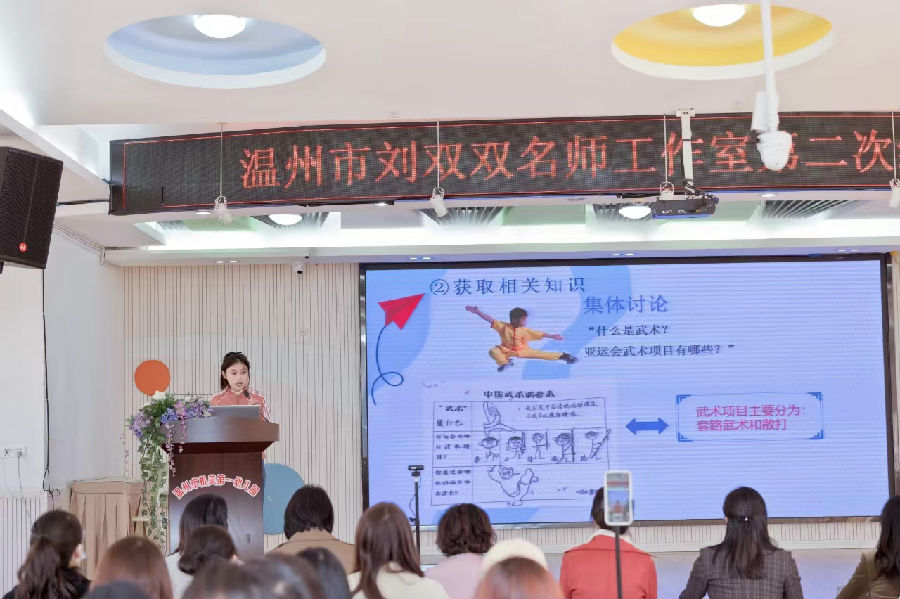 温州市机关一幼贾雪丹老师借着亚运会的契机,结合中国传统文化武术,带领着孩子们开展了《你好,武术》的项目化活动。贾老师以“什么是武术”、“武术设计师”“武术有哪些招式”“武术的武器有哪些”等问题驱动孩子去探究。在深度学习中,教师为幼儿提供了适宜的支持与引导,如武术招式图解、合作制作武术的武器、一起生成武术比赛。幼儿积极调动视、听等多方面的感官,展现了武术的精、气、神,弘扬了传统文化。