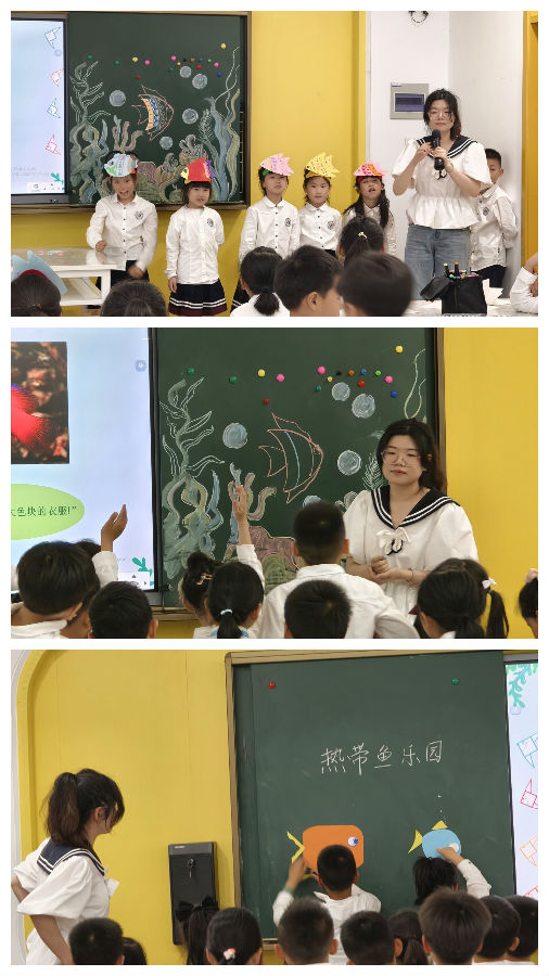 活动首先由林晓洁老师致辞,强调了团队合作的重要性以及持续学习的精神,并鼓励大家保持持续学习的精神,不断追求教育教学的卓越。紧接着,老师们观摩了一堂生动有趣的示范课——《热带鱼乐园》。授课教师陈一阳老师凭借其独特的教学方法和丰富多彩的教学过程,赢得了在场所有人的高度赞誉。课堂中的热带鱼仿佛跃然纸上,让人仿佛置身于一个五彩斑斓的水下世界。