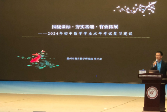 最后,温州市教育教学研究院的教研员章才岔老师带来讲座《围绕课标·夯实基础·有效拓展——2024年初中数学学业水平考试复习建议》。章老师以一幅寓意深长的漫画作为开场,生动揭示了现有中考数学复习中存在的问题与不足,并围绕省统一命题的文件通知,让老师们进一步关注命题的导向与原则。然后,章老师系统地探讨了五个关键议题:一是对温州市内组织的模拟学业水平考试的深度解读;二是关于如何充分利用复习导引资料的有效方法;三是针对区域间合作、联考机制及其价值分析;四是根据历次中考质量分析所揭示的教学问题反思;五是对即将来临的中考备考阶段提出了具有针对性的复习指导方案。