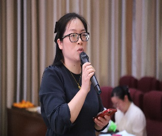 导师余佳莉对这次研讨进行了总结,她首先带领大家了解创意写作和表现性评价的实践由来、概念内涵和关键要素,并结合三节课例进行深度解析,为老师们接下来的研课思路提出了指向性建议。