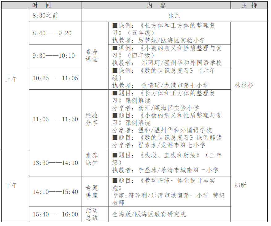 为落实《义务教育数学课程标准》(2022年版)精神,构建素养课堂,促进教师专业发展和教育教学质量提升。经研究,决定举行瓯海区小学数学“教学评”一致性第二次专题研讨活动暨温州市金海跃、符伶利“名师送教”工作室联合活动。现将有关事项通知如下: