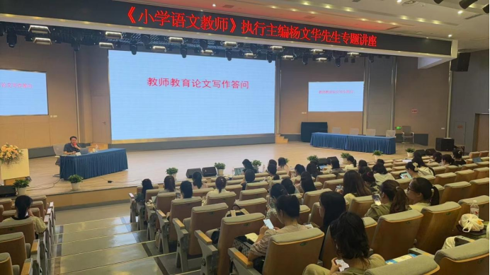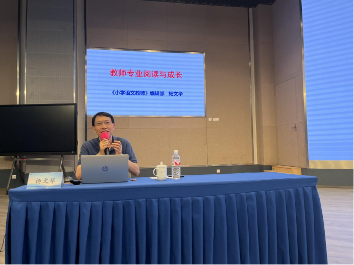 阅读与写作是教师专业成长的两翼,是提升教师专业素养的重要途径。为进一步开拓教师教科研视野,夯实教师写作专业素养,2024年9月14日,项灵婕“名师送教”工作室第8次活动在温州市实验小学桃花岛校区举办,本次活动邀请了《小学语文教师》执行主编、中国语文报刊协会教师专业发展研究会副秘书长杨文华先生,开设题为《教师专业阅读与成长》《教师教育论文写作问答》的讲座,为教师解锁阅读与写作的专业密码。