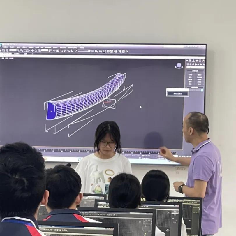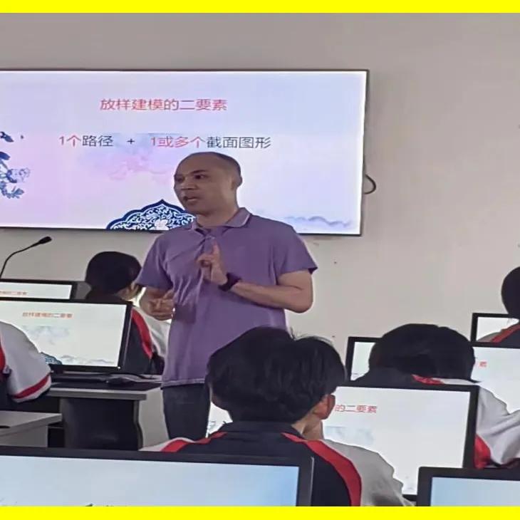 课堂开始,侯哨勇老师通过端午佳节赛龙舟活动视频导入激发学生学习兴趣,进而引入课堂主题“制作龙舟三维模型”。课中围绕主题将任务分为三个环节:1.绘制路径和截面图形,2.放样成型,3.优化模型,精益求精。在难点环节,通过动画演示龙舟船体结构及放样原理,有效地突破了难点。侯老师扎实的教学基本功及丰富的教学手段给听课老师留下了深刻印象。