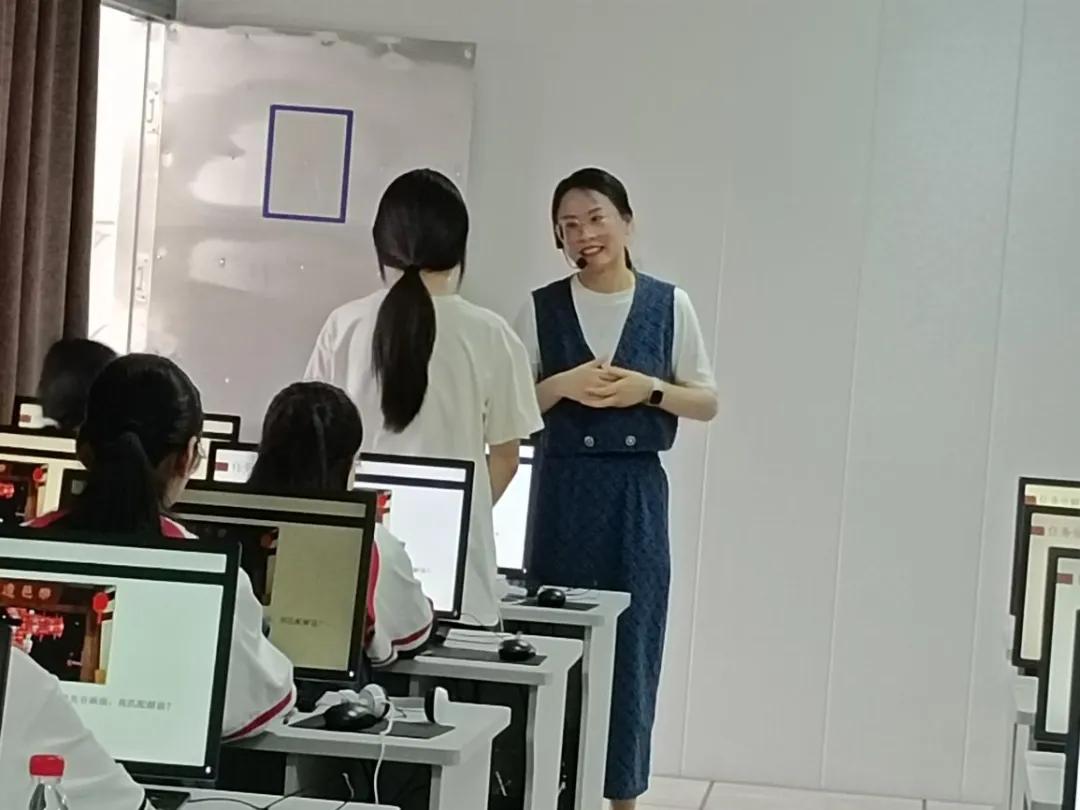 整个课堂杨娜尔老师以非遗文化为抓手,通过短视频作品的制作实现瑞安与乐清两地文化的交流。课堂开始通过乐清市非遗民俗文化巡游视频导入激发学生兴趣,进而发布总任务—制作瑞安市非物质文化遗产短视频。通过对课前知识的回顾引导学生明确本节课的三个子任务:1.制作解说语音2.视频画面剪辑3.添加标题和音乐。在制作解说语音任务环节中,借助AI生成解说词,攻克学生写文案难的难点。在展示评价环节,杨老师从可读性、美观性、衬托性三个维度制作评价标准,让评价更有效,更有针对性。多元多维度的评价促进了学生的学习和发展,也提高了学生的创作水平。