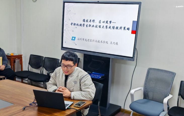龙湾区职业技术学校的王约展老师,结合自身技能带训工作经验,作《德技并修,匠心筑梦——中职机械学生职业技能大赛成绩提升策略》经验分享。王老师重点从技能大赛成绩提升策略:勤修内力、善借外力、知己知彼、团队协作、心理调试五个方面分享了具体举措。王老师的分享内容实践操作性极强,考虑很全面。
