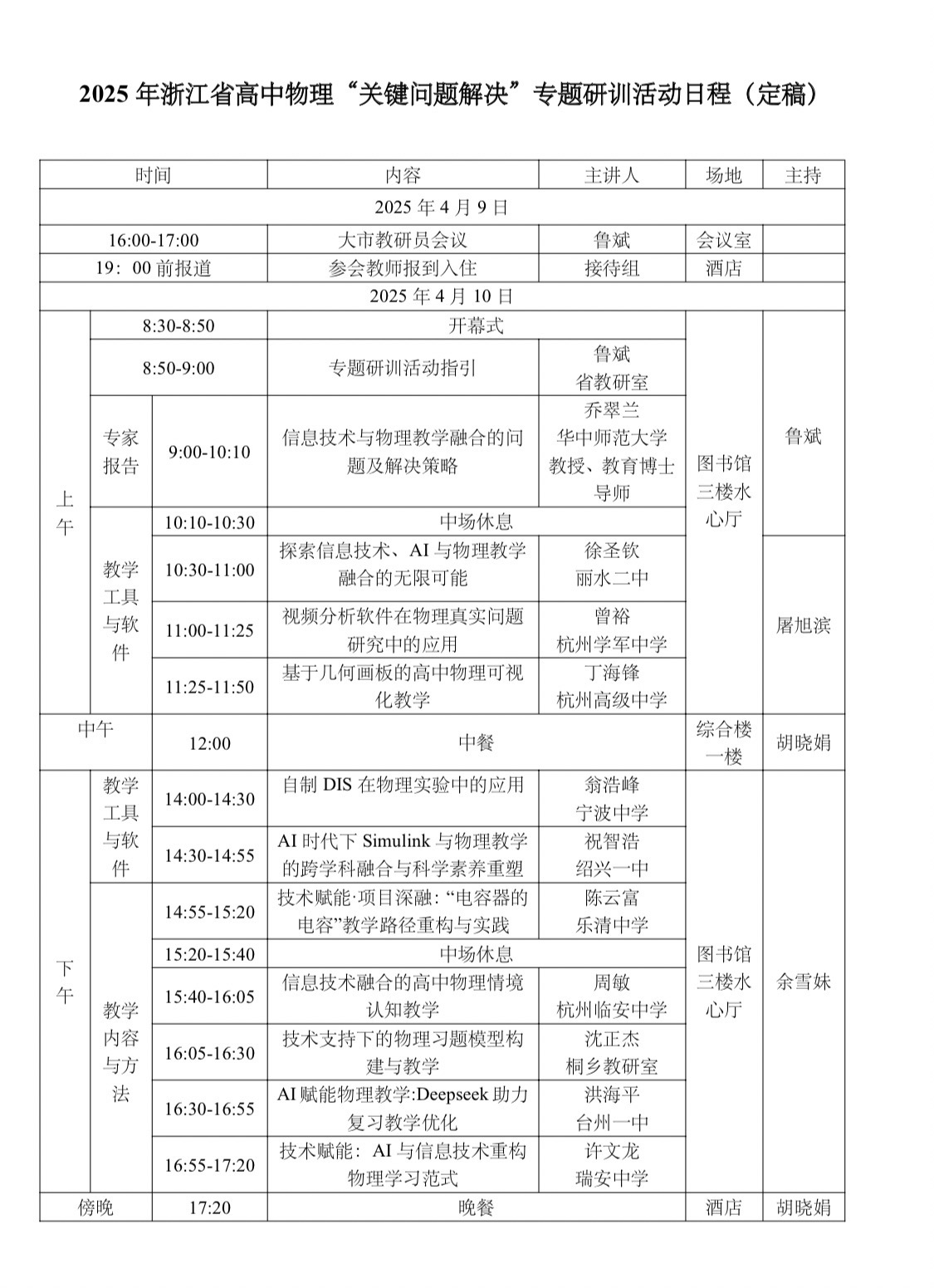 浙江省高中物理“关键问题解决"专题研训活动,具体安排如下。