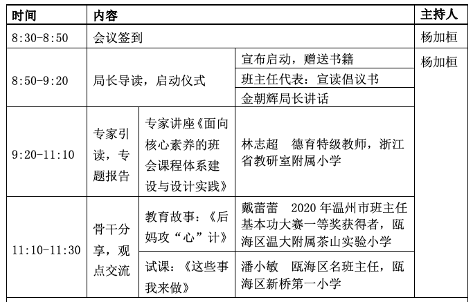 为贯彻《教育部关于进一步加强中小学班主任工作的意见》文件精神,发挥名师示范辐射作用,营造班主任“喜欢当、善于当、尽责当”工作氛围,提高班主任专业素养,促进工作室成员的专业发展,积极响应温州市“爱阅读”行动计划,让班主任凝心静气读好书,学以致用带好班。特举行温州市黄笑蕾名班主任工作室总第三十五次集训(线上)活动。