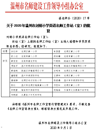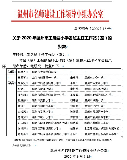 暨温州市王晓君名班主任工作室、刘彬名师工作室第一次活动通知