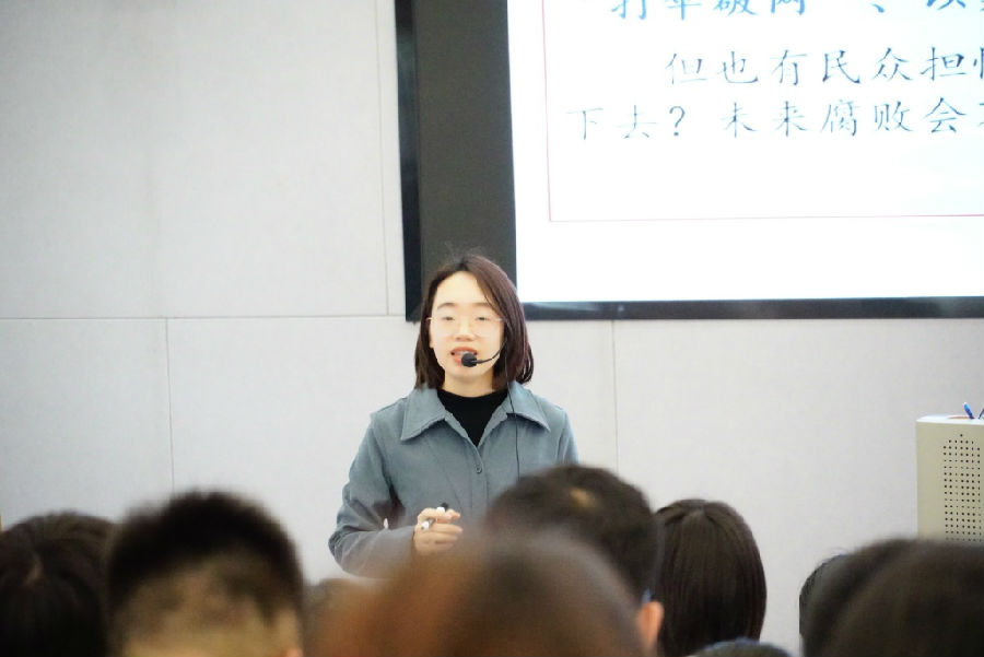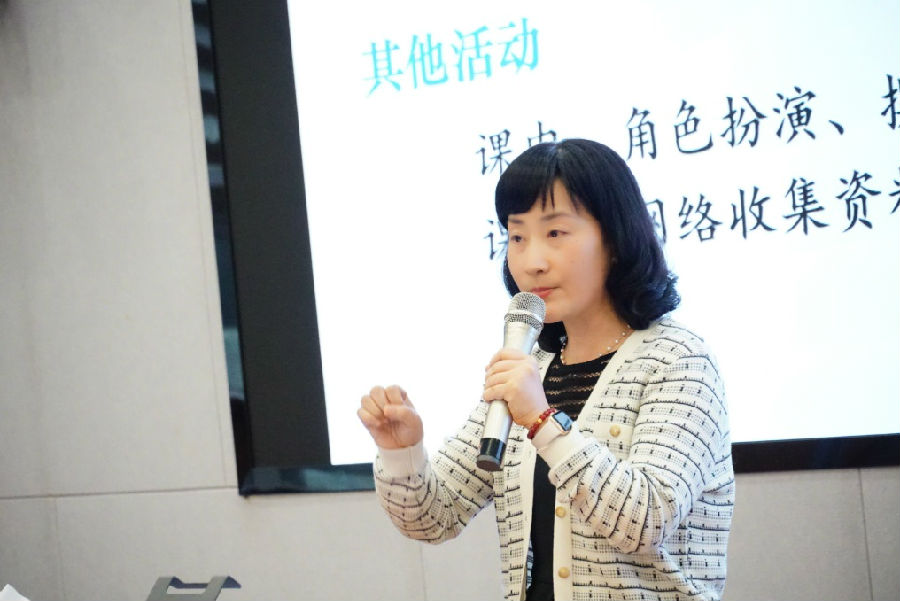 陈有正老师从活动型、议题式、知识本位、互动、思辨、效率这六个角度阐述了自己的见解,对教学提出了建设性的意见与建议,给参会老师带来新的启发与思考,获得一致赞同。单茹茹老师从知识本位出发,清晰诠释了新课标强调的“核心素养并不见之于孤立的、碎片式的学科知识和技能的习得,而是见之于能否综合地、系统地运用学科知识和技能应对来自真实生活的问题”所蕴含的深刻道理,向参会老师分析了知识与素养之间的密切联系,指出学科核心素养是要让学生能够运用知识去面对真实生活的情境,引出议题在课堂教学中的运用。单茹茹老师在高度肯定授课老师所具有的亮点的同时,也一针见血地指出了需要改进的地方。两位老师的评课有力地促进了参会老师的专业成长和教育教学水平的提升。
