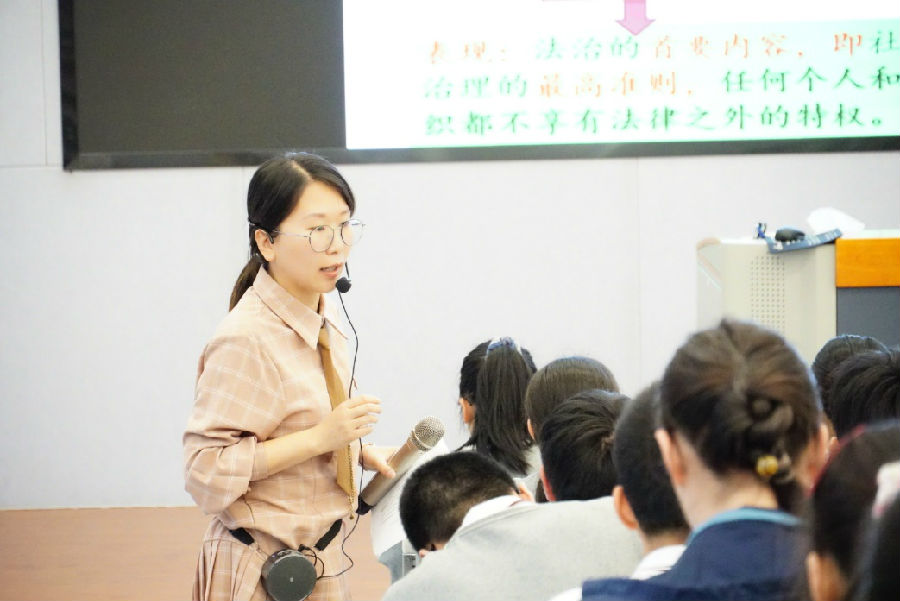 本次课堂展示环节共有四位老师分别执教新教材必修三8.1《法治国家》和8.2《法治政府》。