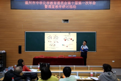 工作室学员,平阳中学正高级教师孔德淼老师作了《认识方式的转变与发展之教学的思考》的专题讲座。孔老师从自身教学实践出发,整理并解决了《物质结构与性质》教材