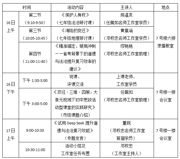 各有关学校,为提升教科研能力和智能技术对教学的运用,温州市邓权忠“名师送教”工作室决定开展第十四次研修活动,以促进广大学员学习新理论、利用新技术、研究新课堂。