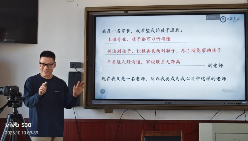 紧接着,童宗雨老师以《教学相长,评价落实》为主题,分享了在课堂教学与评价实践中的探索与感悟。他认为,从换位思考的角度思考,如果你是家长,你希望你的孩子遇到怎么样的老师?童老师提出以下几点期待