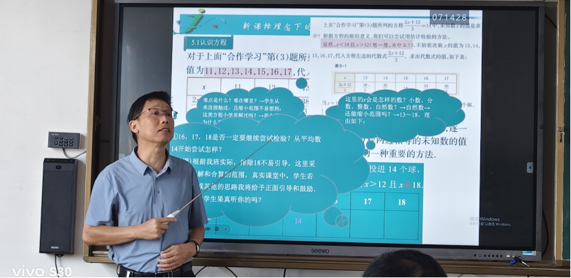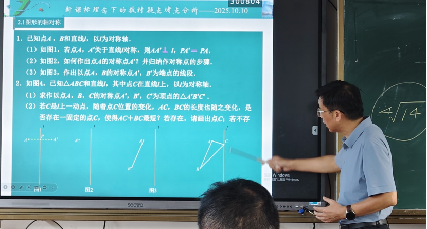 工作室荣幸地邀请到永嘉县教师发展中心教研员胡明雷老师作专题报告。胡明雷老师以《新课标理念下的教材疑点堵点分析》为题,讲解了在教育教学过程中遇到的疑点。“有疑处”释疑,疏通教学堵点。 针对教师们普遍反映的教学难点,如认识方程中尝试检验法的应用”、“整式的乘法教学中的联系实际图形”、“图形的对称轴”等,胡明雷老师抽丝剥茧,不仅提供了清晰的教学路径,更分享了如何引导学生构建知识网络,将零散的知识点串联成线、编织成网,实现知识的融会贯通。